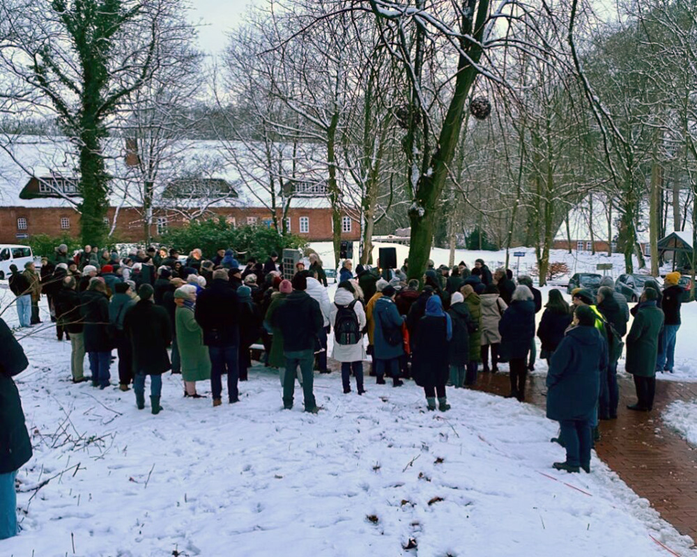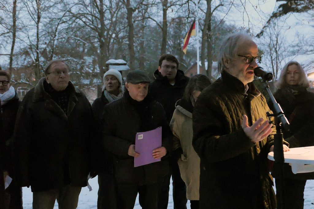 Der Gedenkort für die im Nationalsozialismus ermordeten oder in den Tod getriebenen Worpsweder Bürger*innen wurde am 27. Januar 2026, mit einer einer eindrucksvollen Eröffnungsfeier der Öffentlichkeit übergeben. Mehr als 150 Personen hatten sich am Rathaus Worpswede zu dieser Feier eingefunden. Wir dokumentieren hier diese Eröffnung in Wort und Bild.